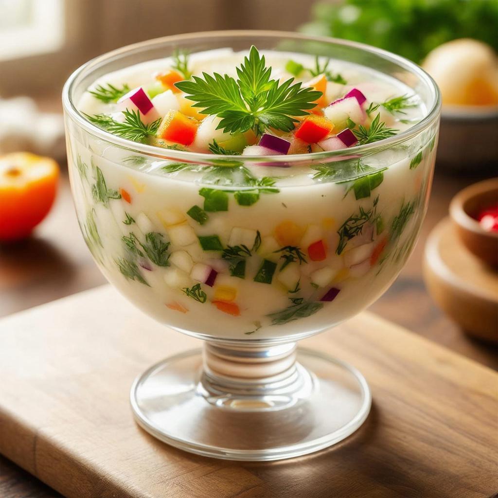 Освежающее традиционное русское блюдо, которое подарит вам заряд бодрости и энергии в жаркий летний день. Легкая и сбалансированная композиция ингредиентов включает свежие овощи, отварное мясо или колбасу, крутые яйца и заправляется квасом, кефиром или минеральной водой. Окрошка богата витаминами и минералами, отлично утоляет жажду и восстанавливает силы.