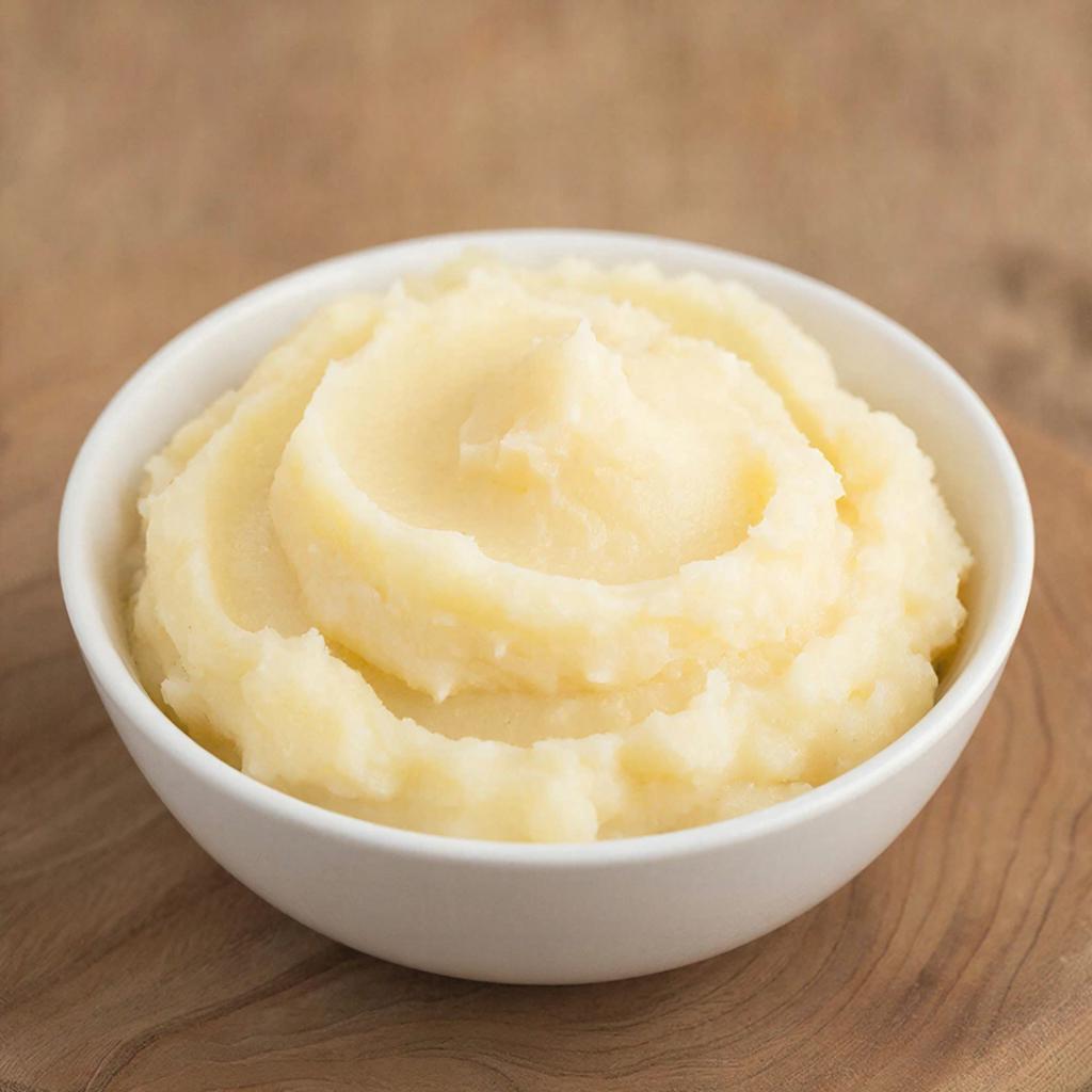 Это воздушное и нежное картофельное пюре, которое идеально подойдет для семейного ужина или праздничного стола. Оно готовится из отборных клубней картофеля, сваренных до совершенства и тщательно измельчённых вручную. Мы добавляем минимальное количество соли и сливочного масла, чтобы подчеркнуть естественный вкус картошки и создать кремовую текстуру.