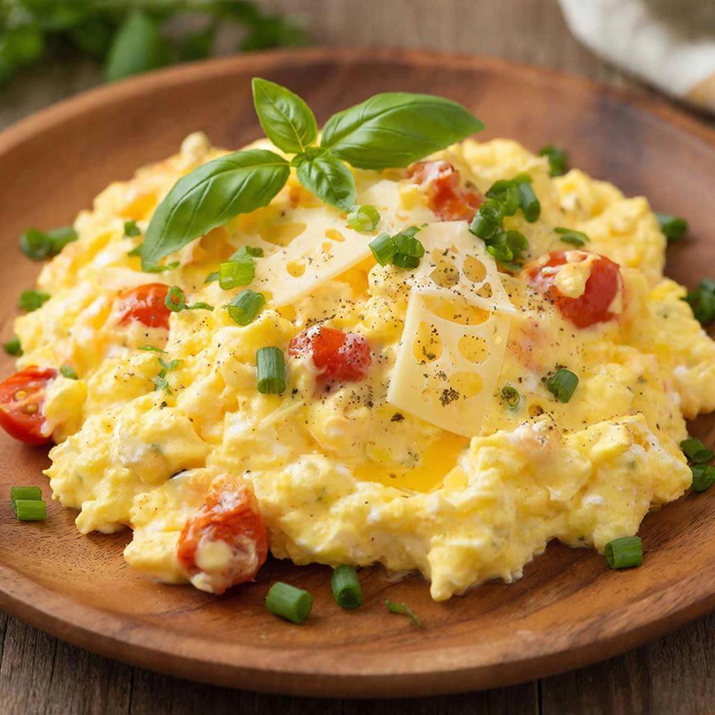 Нежный и ароматный завтрак, идеально подходящий для утреннего начала дня. Наш скрембл готовится из свежих яиц высшего качества, бережно перемешанных с молочными сливками и приправленных натуральными травами и специями. Блюдо отличается мягкой, воздушной консистенцией и насыщенным вкусом, благодаря чему оно придется по душе даже самому требовательному гурману. 200 г