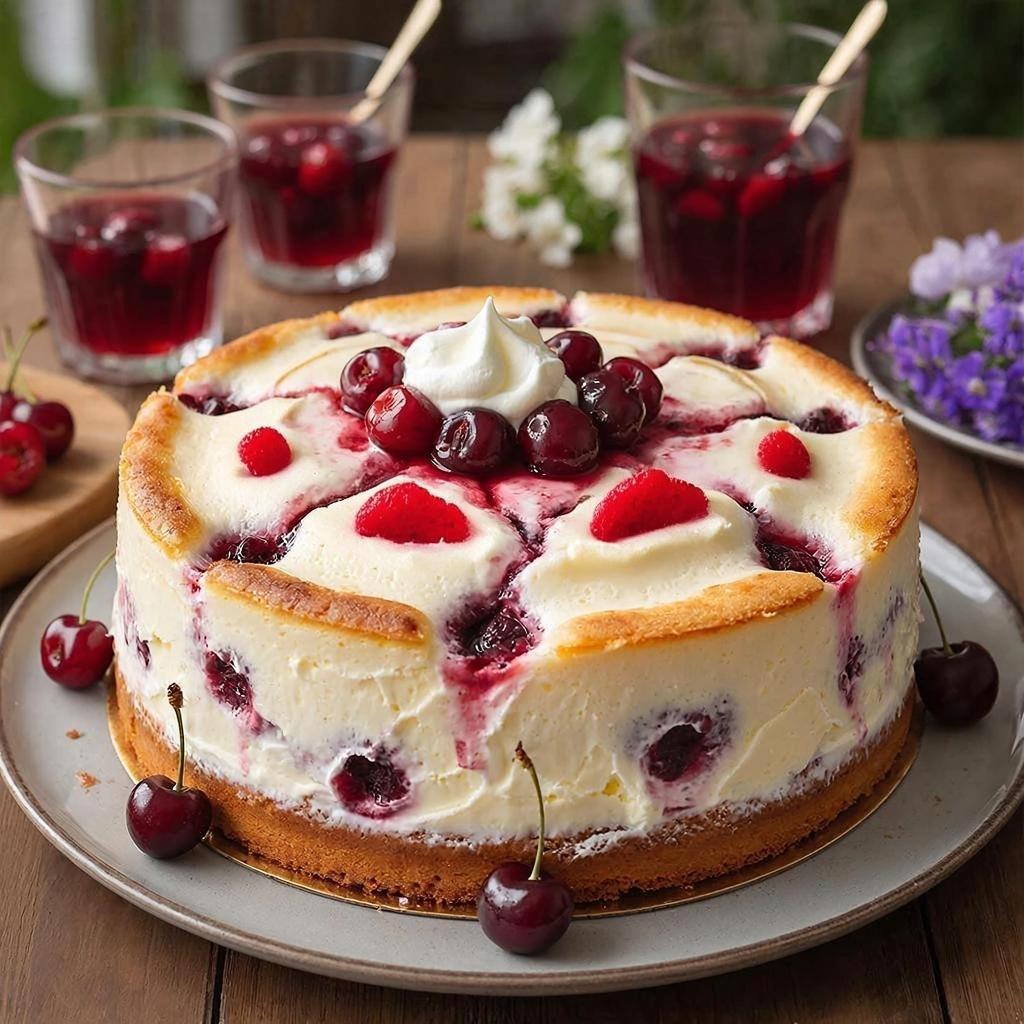 Традиционный русский десерт, приготовленный из нежнейшей домашней сметаны, воздушного творожного теста и свежих ягод. Верх украшен меренгой и сахарной пудрой, создавая идеальное сочетание вкусов и текстур. Легкий, освежающий и удивительно вкусный — идеальный выбор для завершения трапезы.